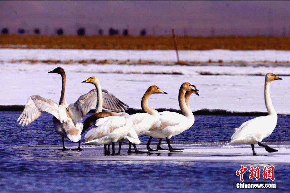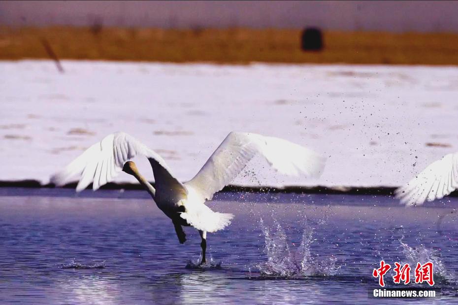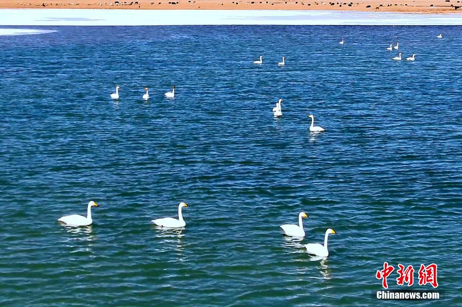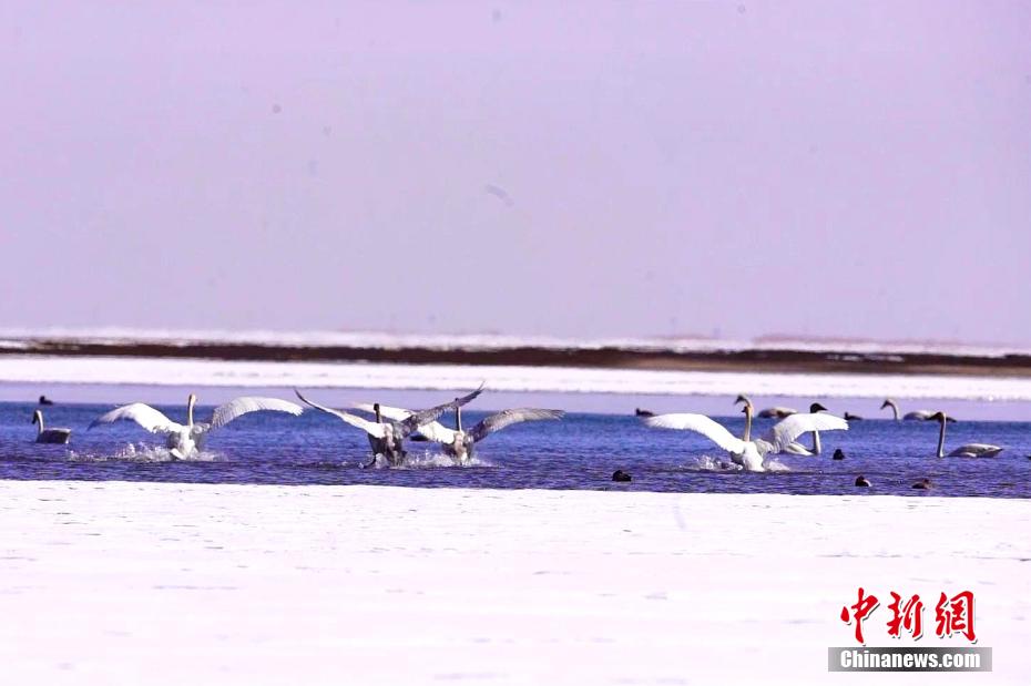 高原初春,在素有“高原藍(lán)寶石”之稱的青海湖,記者拍攝到成群大天鵝在湖面上練習(xí)起飛、降落、滑行。青海國(guó)家公園觀鳥協(xié)會(huì)會(huì)長(zhǎng)王艦艇介紹,每年3月中旬,在青海越冬的大天鵝都會(huì)踏上北遷繁殖路。目前在青海湖的大天鵝多為青海東部黃河流域的“冬候鳥”,在青海湖短暫停留后北遷到夏季繁殖地,在秋末初冬時(shí)又會(huì)“舉家”回歸來到越冬地。大天鵝屬雁形目鴨科天鵝屬,為國(guó)家二級(jí)重點(diǎn)保護(hù)野生動(dòng)物,在國(guó)內(nèi)主要繁殖于新疆巴音布魯克,主要越冬地有天津及河北沿海、山東榮成和東營(yíng)、黃河中下游濕地、甘肅、青海、新疆等地。青海湖作為大天鵝的主要越冬地之一,開闊的湖面、涌流的泉水與充足的食物為大天鵝提供了適宜的棲息環(huán)境。