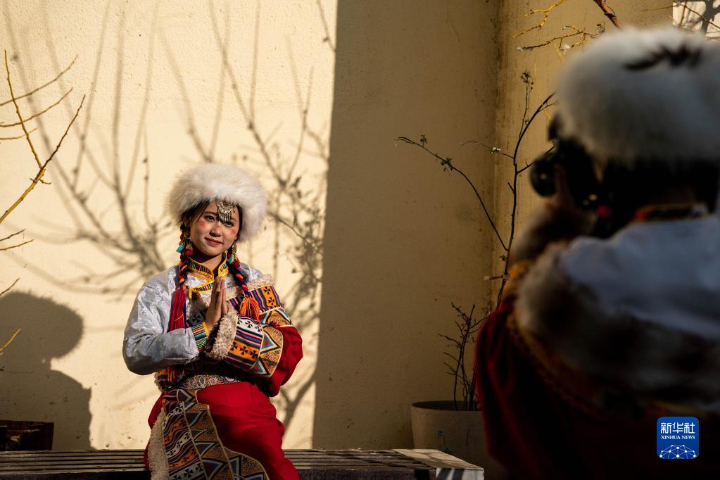 3月8日,游人在獨(dú)克宗古城拍照留念。新華社記者 胡超 攝