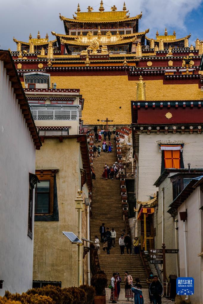 3月7日,游人在松贊林寺參觀游玩。新華社記者 胡超 攝