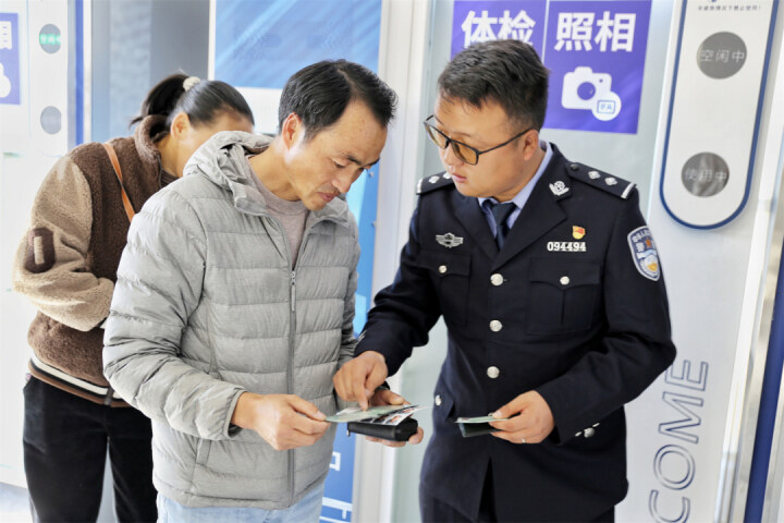 3月14日,記者在迪慶州交警支隊24小時自助服務區(qū)看到,不少群眾正在工作人員的指導下自助辦理駕駛證換證業(yè)務。