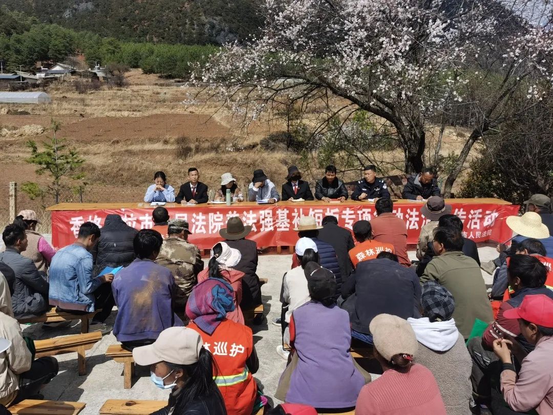 為深入貫徹落實(shí)普法強(qiáng)基補(bǔ)短板專(zhuān)項(xiàng)行動(dòng),打好普法強(qiáng)基攻堅(jiān)戰(zhàn),有效提升群眾法治意識(shí),維護(hù)社會(huì)和諧穩(wěn)定,3月14日,香格里拉市人民法院組織普法小分隊(duì)聯(lián)合洛吉鄉(xiāng)派出所、駐村干部、村兩委深入九龍村開(kāi)展普法強(qiáng)基補(bǔ)短板專(zhuān)項(xiàng)活動(dòng)。會(huì)議由洛吉鄉(xiāng)黨委副書(shū)記曹志平主持,九龍村高峰上組、高峰下組、干溝組、吖口組四個(gè)村民小組村民參加。