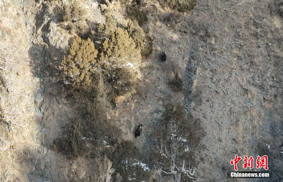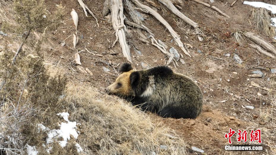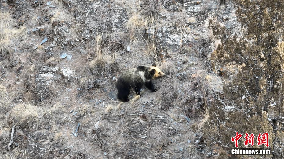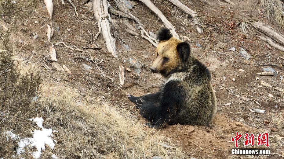 青海三江源生態(tài)管護(hù)員記錄結(jié)束冬眠的棕熊影像