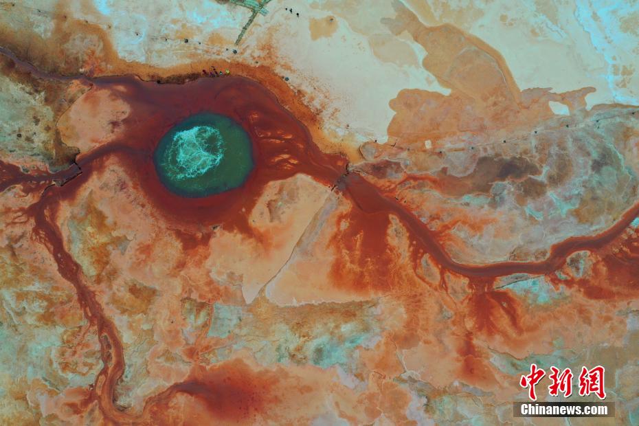 航拍青海大柴旦烏素特水上雅丹奇特景觀。 馬銘言 攝