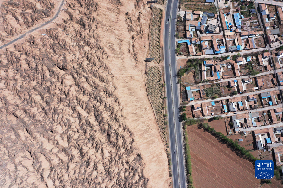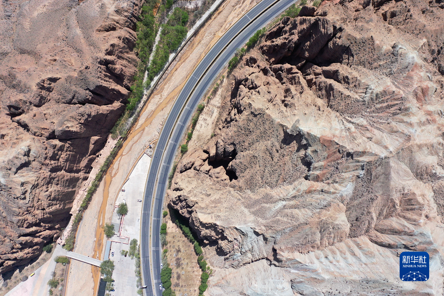 這是4月17日拍攝的青海省海南藏族自治州貴德縣境內(nèi)的丹霞地貌(無(wú)人機(jī)照片)。新華社 耿輝凰 攝