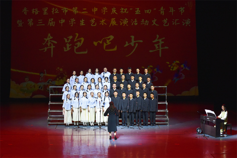 5月4日,香格里拉市第二中學(xué)在獨(dú)克宗古城花巷劇院開展慶?!拔逅摹鼻嗄旯?jié)暨香格里拉市第二中學(xué)第三屆文藝匯演活動(dòng)。
