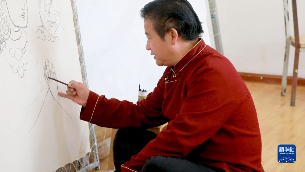 打磨布面、研制畫料、著色、暈染、勾線……唐卡創(chuàng)作的每一個環(huán)節(jié)都考驗著畫師的專注力和耐力。