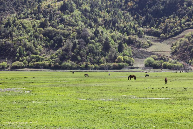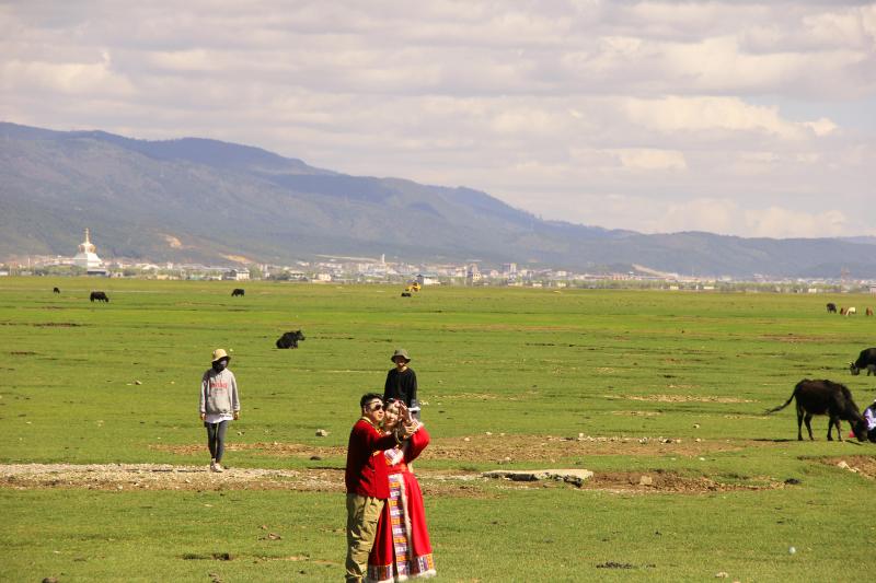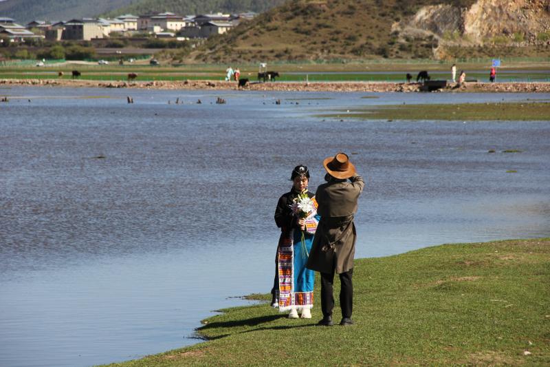 伴隨著立夏過后的第一場雨雪,迪慶高原綠意更濃。納帕海湖畔更添一分高原夏日氣息,碧藍(lán)的湖水、翠綠的草原和自由行走在草原上的牛羊是高原獨特的風(fēng)景線。深深吸引著來自五湖四海的游人駐足觀賞。雖然“五一”假期已過,但前往納帕海游玩的游客并沒有減少,不少游客表示是特意前往這里感受草原風(fēng)光、拍照留念的。