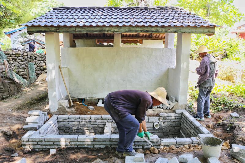 工人正在金江鎮(zhèn)吾竹村進(jìn)行農(nóng)村三格式戶廁建設(shè)