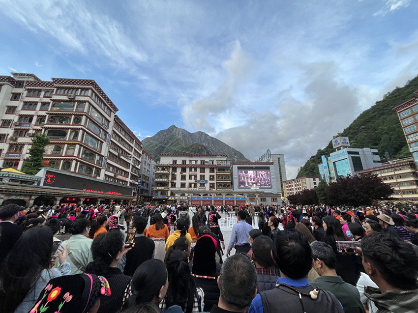 5月26日傍晚,康定情歌廣場的千人鍋莊將“四月八”跑馬山轉(zhuǎn)山會的熱烈氣氛推向了高潮。