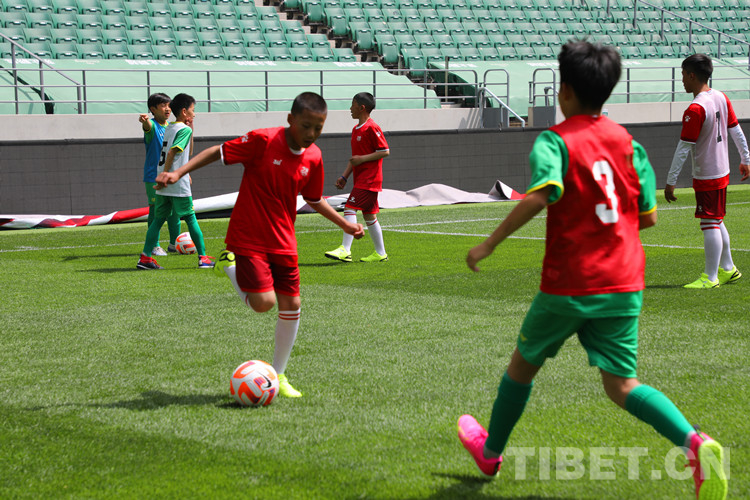 同樣在這片場館,6月1日,他們和北京國安的30名小球員進(jìn)行過一場交流賽。來自雪域風(fēng)一般的少年們完全忽略了北京炎熱的天氣,在場上放飛奔跑,追逐拼搶。