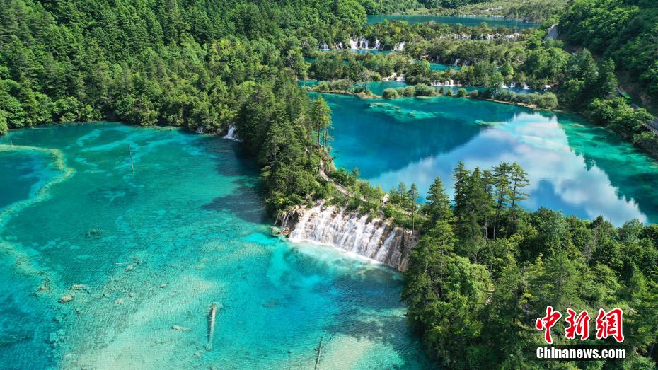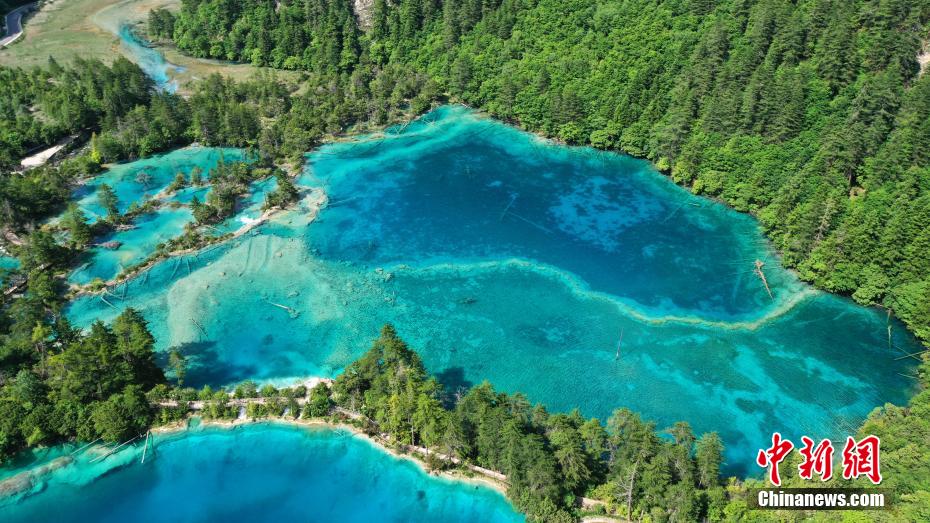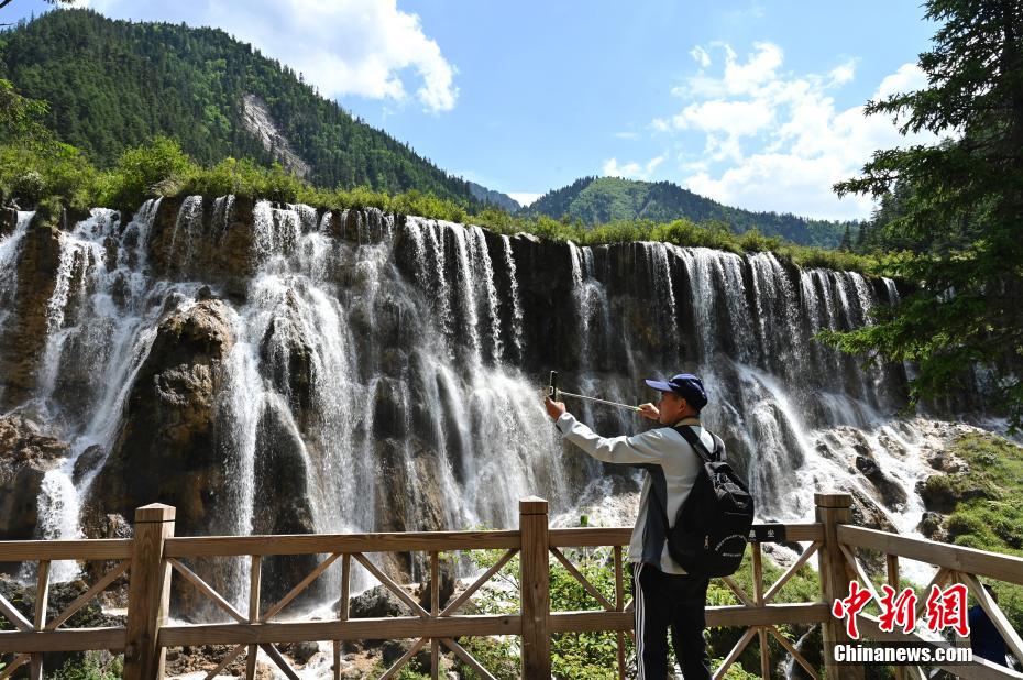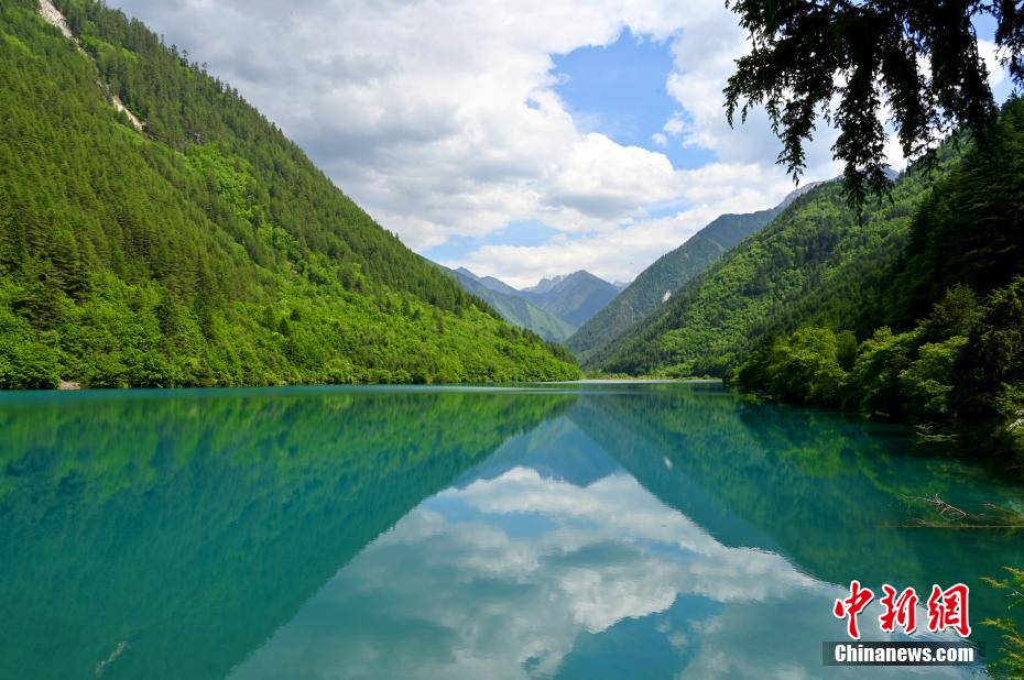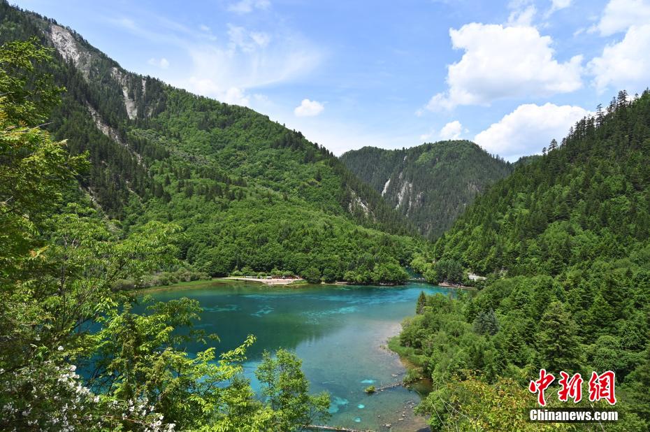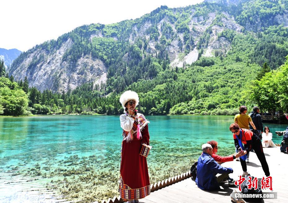 6月8日,初夏時節(jié),世界自然遺產地九寨溝景區(qū)風景如畫,吸引眾多游客觀光游玩。安源 攝