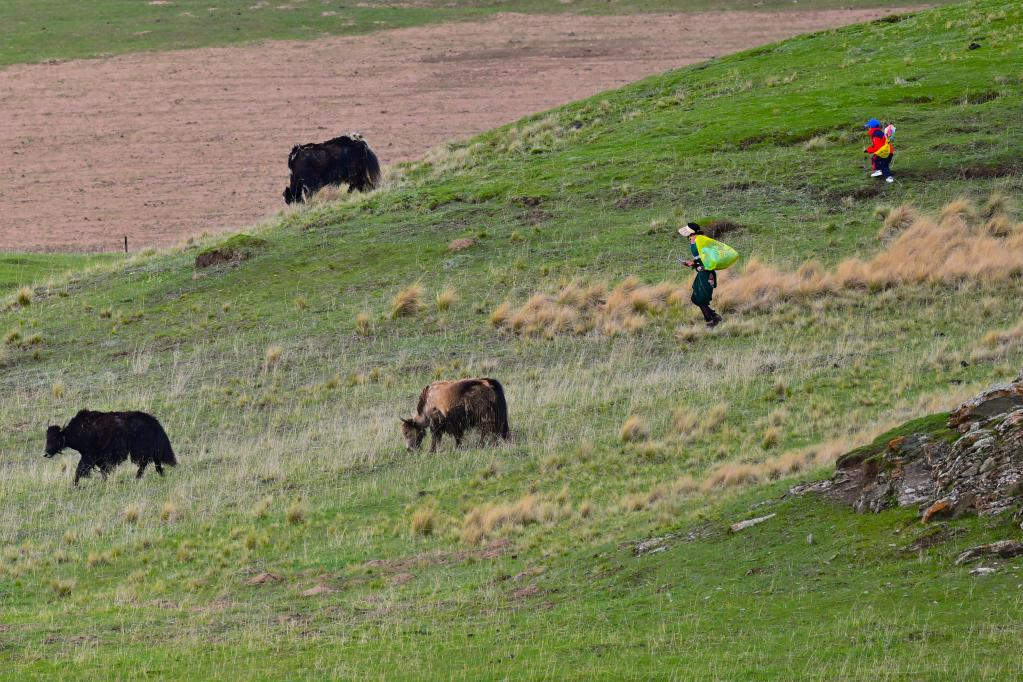 6月9日,在青海省黃南藏族自治州澤庫縣的高原草原上,當?shù)啬撩裨诜拍痢?新華社記者 張龍 攝
