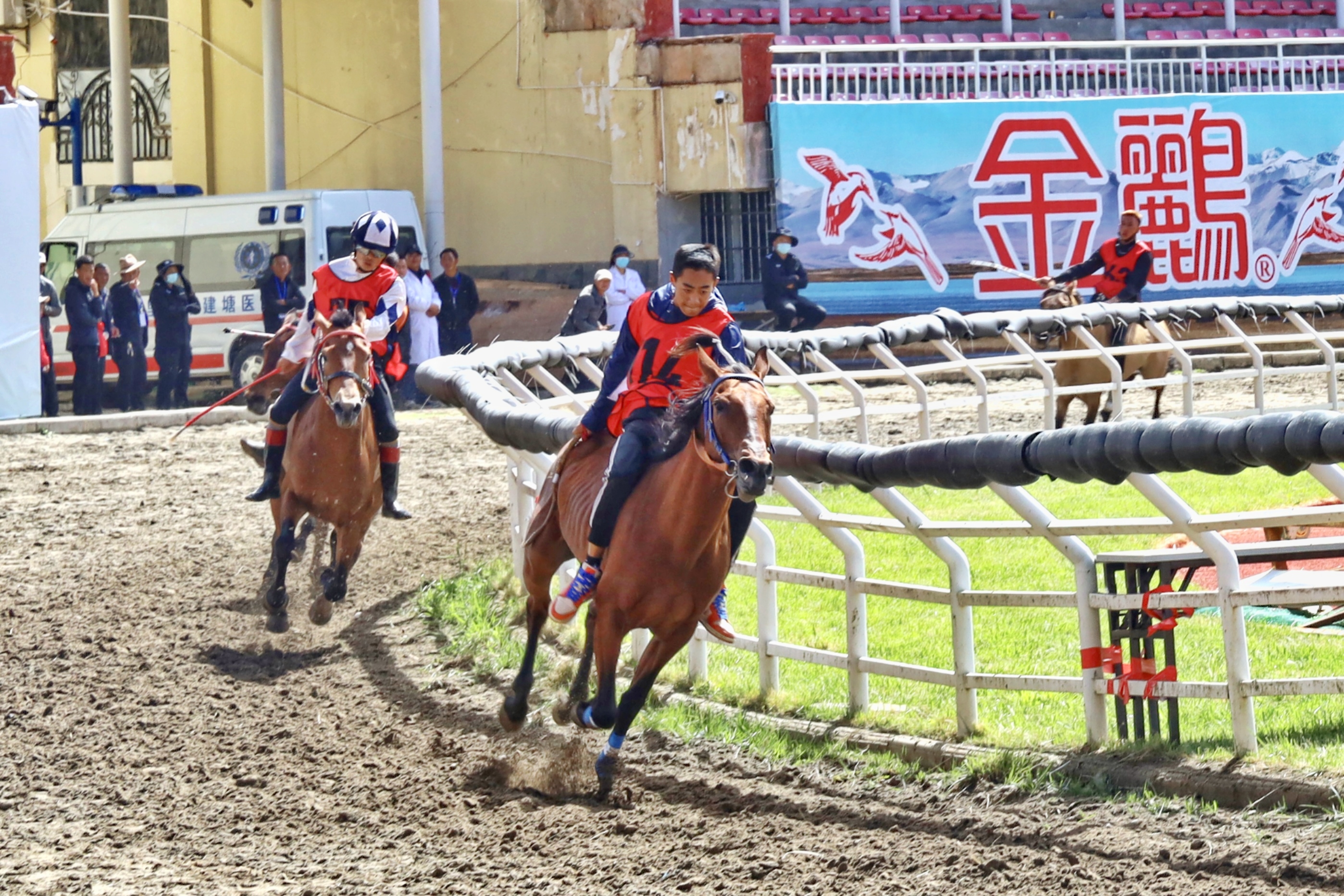 “我的馬剛比完賽,需要護(hù)理一下?!?月23日上午,剛結(jié)束香格里拉端午賽馬節(jié)乙組1000米速度賽馬項(xiàng)目,魯茸汪小顧不上自己休息,便急忙喘著粗氣往帳篷方向趕去,給馬腿綁上護(hù)具、敲開凍好的冰塊、給馬腿冰敷……行云流水的完成一系列操作后魯茸汪小才安下心來(lái),“剛進(jìn)行了極速的奔跑,馬腿會(huì)有一些脹筋、關(guān)節(jié)腫脹等問(wèn)題,需要用冷水沖洗、冰敷,不然它會(huì)很難受?!濒斎淄粜〗忉尩?。