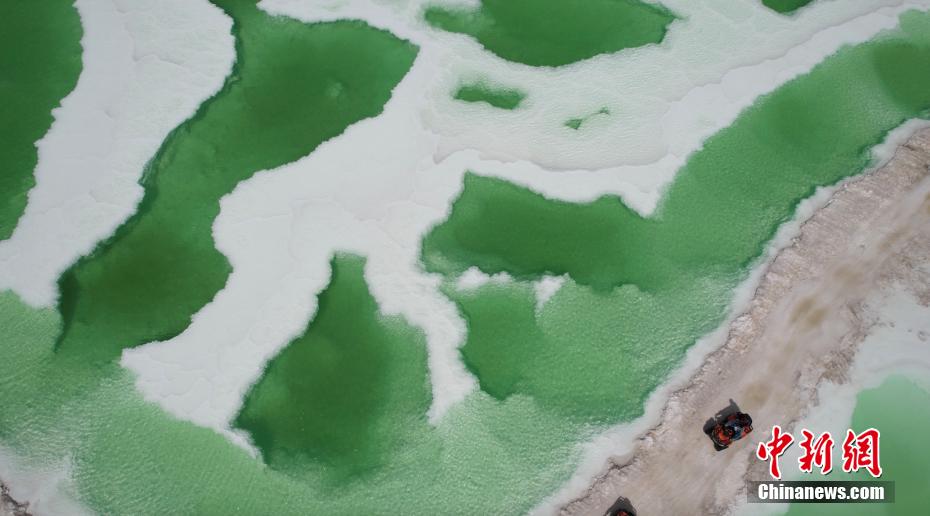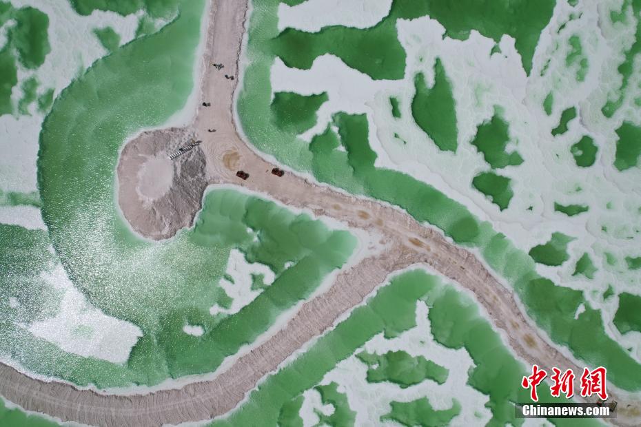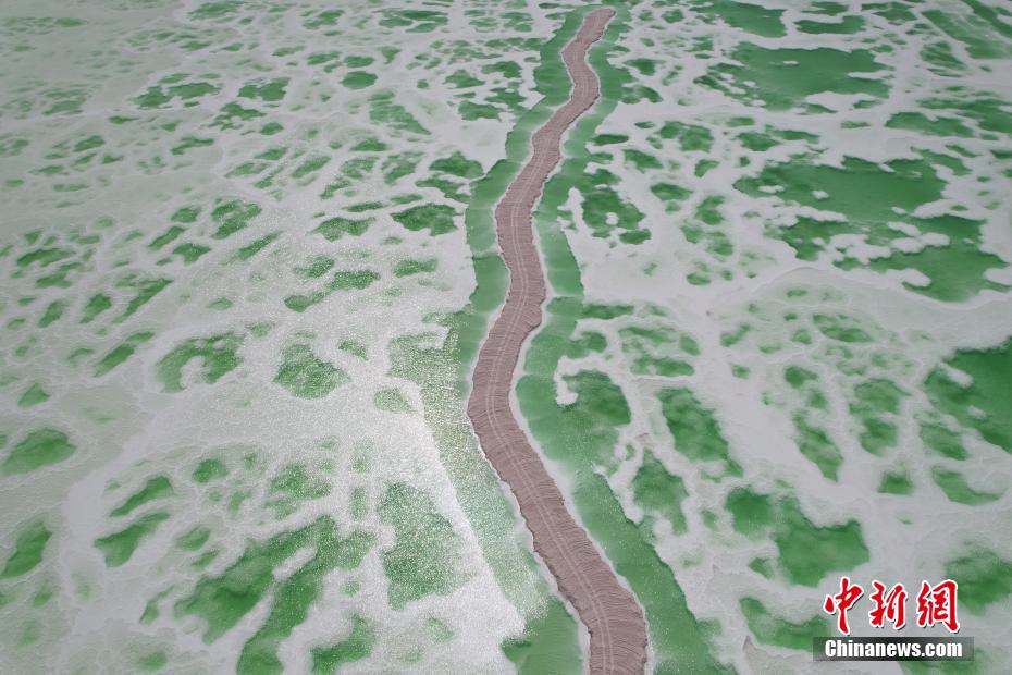 8月15日,航拍地處青海省海西州茫崖市的翡翠湖。翡翠湖是一個人工鹽湖,田字狀的湖水呈現(xiàn)出青翠的色彩。[詳細]