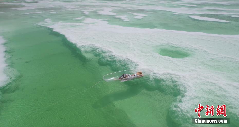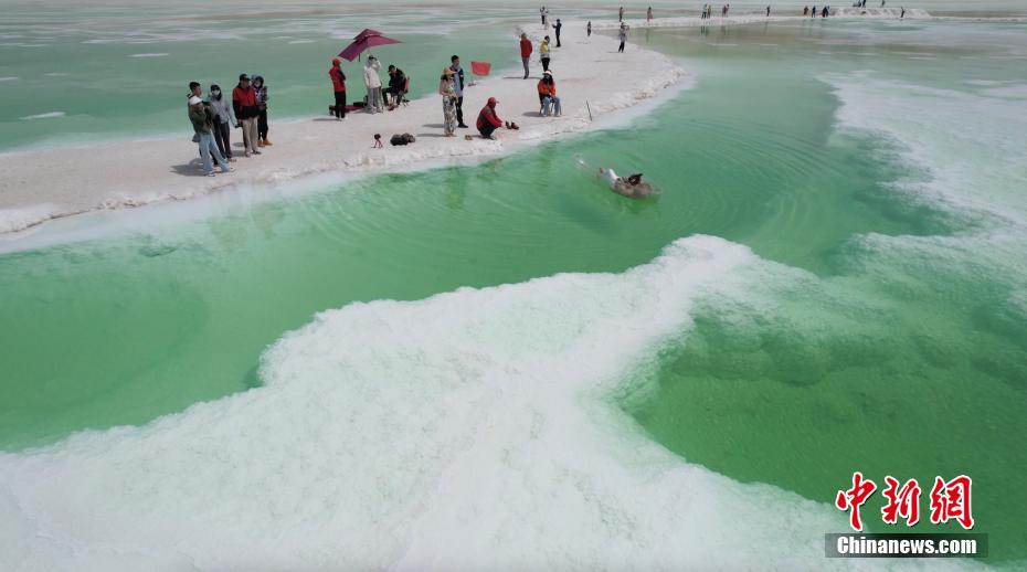 夏日,位于青海海西州茫崖市花土溝鎮(zhèn)的翡翠湖宛如色彩絢麗的油畫被描繪在蒼茫的柴達木盆地上,淡青、翠綠、深綠色的湖水如碎玉散落在大漠戈壁上,充滿生機。茫崖翡翠湖南依昆侖山,北靠阿爾金山,總面積約26平方公里,屬于硫酸鎂亞型鹽湖,由于所含礦物質濃度的不同,致使湖面顏色深淺不一。18日,由中新社青海分社,青海省海西州茫崖市委、茫崖市人民政府共同主辦的“赴蒼茫之崖品人間煙火”青海·茫崖2023美食大會在茫崖市正式啟動。近日,活動團隊來到茫崖翡翠湖進行拍攝采風。