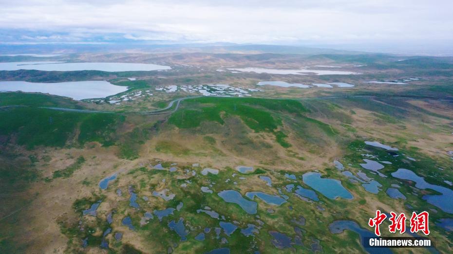 7月2日,航拍青海省果洛藏族自治州瑪多縣星星海。位于黃河源頭瑪多縣的星星海,由大大小小的湖泊、海子、水泊組成,從空中俯瞰,無數(shù)湖泊宛如繁星灑進大地,別有一番景致。