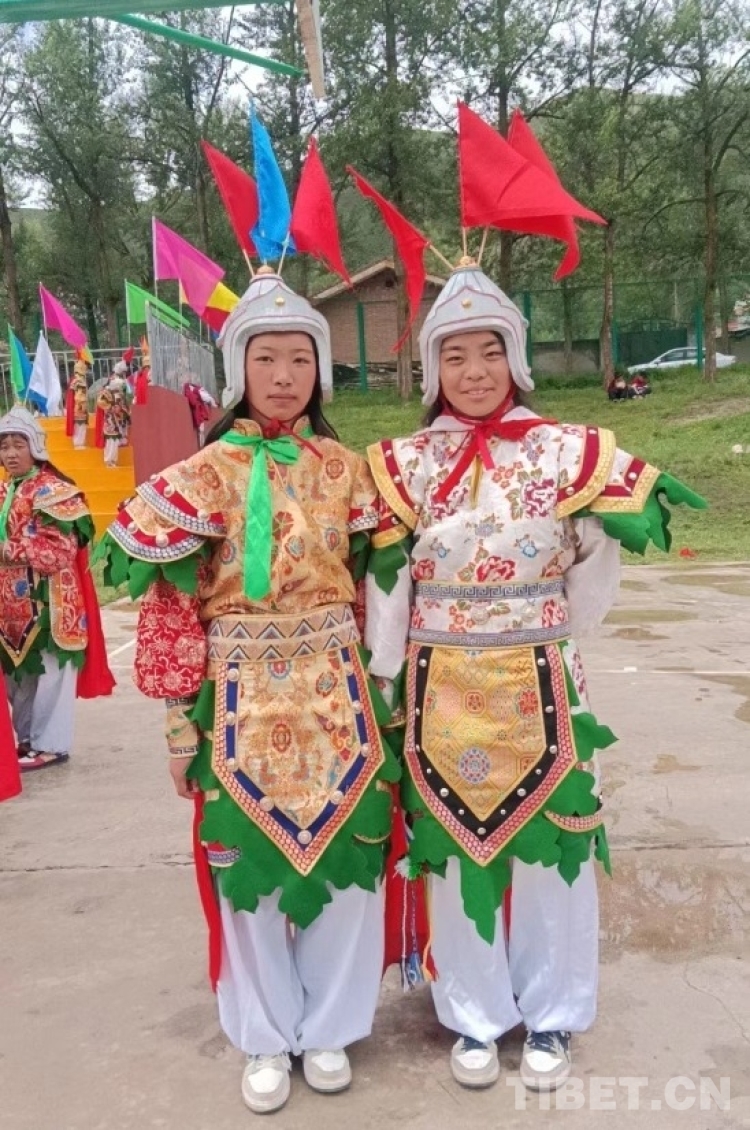 為了讓孩子們從小了解感受格薩爾文化,卡雪拉毛所在的班瑪縣藏文中學(xué)于2013年組建了格薩爾文化傳承班,學(xué)校每周都會安排說唱學(xué)習(xí)和訓(xùn)練,課程的主要形式包括演習(xí)格薩爾劇本和格薩爾舞蹈。
