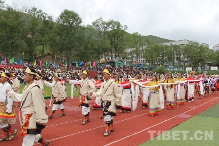 圖為班瑪縣藏文中學(xué)學(xué)生在文化活動表演期間
