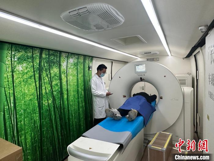 一名牧民在青海省果洛藏族自治州瑪沁縣人民醫(yī)院的“移動醫(yī)療一體車”完成CT檢查。同濟大學(xué)附屬上海市第四人民醫(yī)院供圖