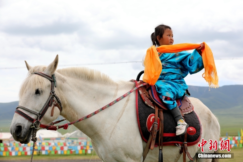 7月14日,在青海省海北藏族自治州海晏縣西海鎮(zhèn),當?shù)鼐用駬]舞哈達迎接車隊到來。當日,2023第二十二屆環(huán)青海湖國際公路自行車賽迎來第六賽段:祁連至西海鎮(zhèn)的比賽。這也是本屆賽事的最長賽段,賽段全長206公里。