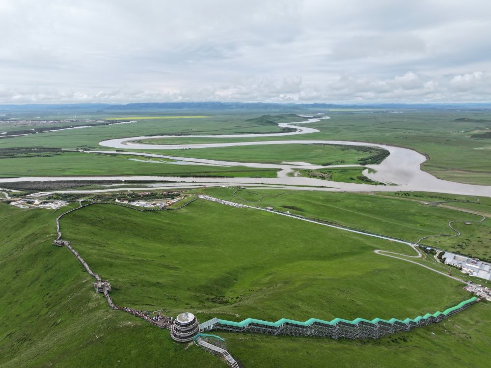 這是7月14日拍攝的若爾蓋縣黃河九曲第一灣景區(qū)(無人機照片)。新華社記者 邢拓 攝