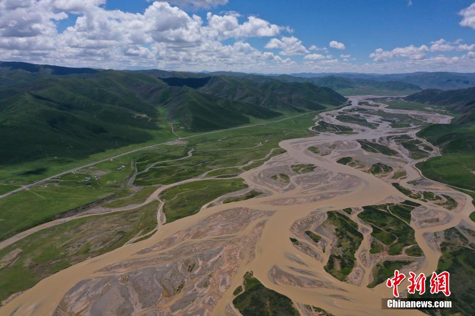 7月28日,航拍青海省果洛藏族自治州達(dá)日縣黃河辮狀水系。果洛州達(dá)日縣平均海拔在4200米以上,盛夏時節(jié),連綿的山巒披上“綠毯”,黃河流經(jīng)其境內(nèi)后,在開闊平緩的河道中數(shù)十條水流時而相匯時而分離,交織出巨型的辮狀水系,在群山和城鎮(zhèn)中蜿蜒流淌,形成獨特的高原壯美山河圖。