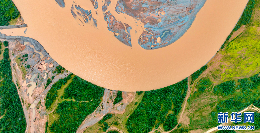 圖為在青海省玉樹藏族自治州雜多縣境內(nèi)拍攝的扎曲河(無人機(jī)照片)。新華網(wǎng) 宋忠勇 攝