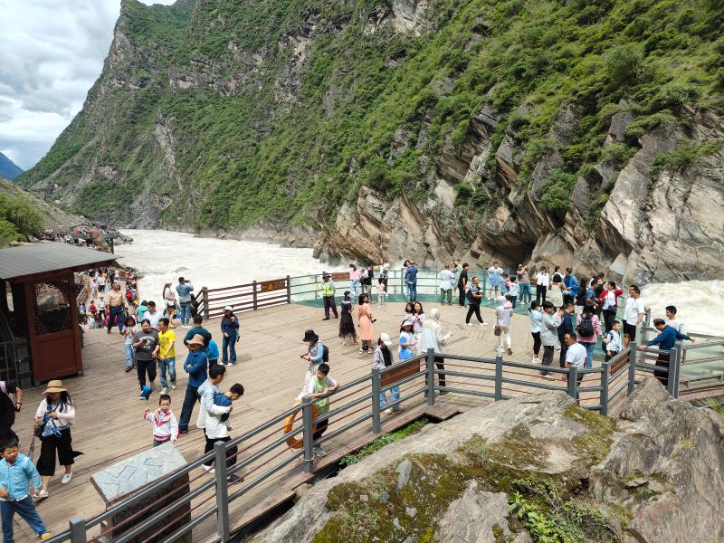 時(shí)下,香格里拉市虎跳峽景區(qū)進(jìn)入最佳觀賞季,前來觀光的游客數(shù)量持續(xù)增長。據(jù)景區(qū)工作人員介紹,一周以來,每天游客接待量達(dá)1.5萬人次,未來幾周將進(jìn)入暑假游高峰期,預(yù)計(jì)游客數(shù)量還會(huì)持續(xù)增長。