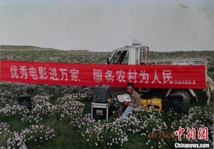 資料圖為許國強(qiáng)在海南州共和縣草原放映電影。受訪者供圖