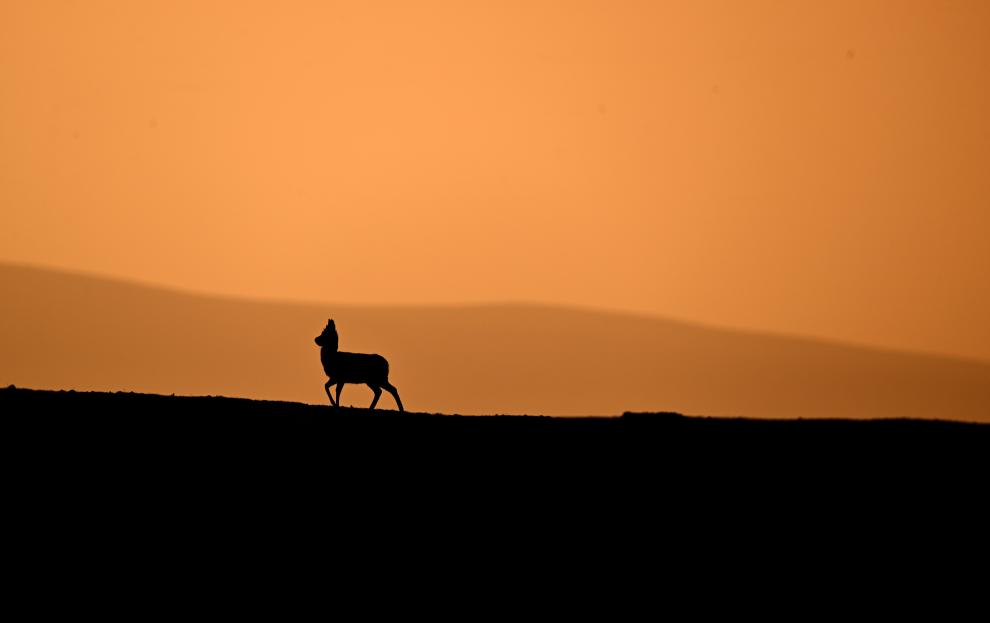 一只雌性藏羚羊在可可西里卓乃湖區(qū)域活動(dòng)(6月18日攝)。新華社記者 張宏祥 攝