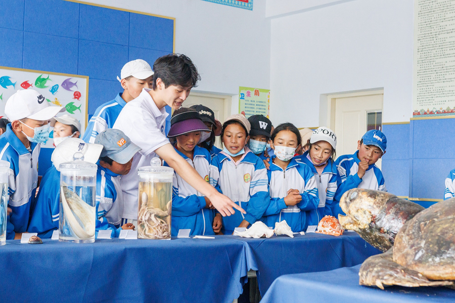 據(jù)介紹,支教隊(duì)在抵達(dá)囊謙第二完小后,充分發(fā)揮海洋特色,向孩子們分享了海洋生物博物館中的標(biāo)本制作方法,普及標(biāo)本的制作原理,并且從海洋的分布位置到海洋物種數(shù)量及分類,從體積最大的海洋生物藍(lán)鯨到游泳速度最快的劍魚,以及海洋污染的危害等方面為孩子們普及海洋環(huán)境保護(hù)知識(shí)。