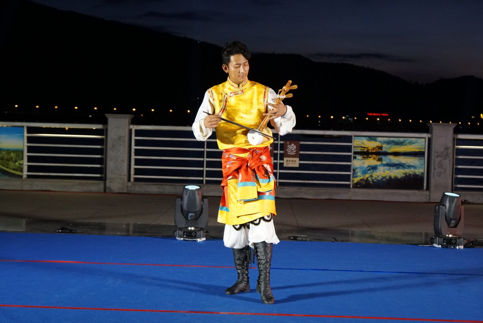 現(xiàn)場,迪慶州文化館的演員們用婉轉(zhuǎn)的歌聲、優(yōu)美的舞姿,為現(xiàn)場觀眾帶來了一場視聽盛宴。開場舞蹈《歡天喜地》以悠揚的旋律、奔放的舞步,瞬間引起了現(xiàn)場群眾的關(guān)注和歡呼。大家紛紛打開相機,留下美好的瞬間。在接下來一個半小時的演出中,舞蹈《香格里拉鍋莊》《阿尺目刮》、弦子演奏《熱芭》、歌曲《卓瑪拉》《維西歡迎您》等精彩節(jié)目輪番上演,全方位詮釋了“奮進迪慶”的獨特魅力,為現(xiàn)場觀眾獻上了一場融地方文旅特色和藝術(shù)內(nèi)涵于一體的視聽盛宴,加深了大家對迪慶的印象。