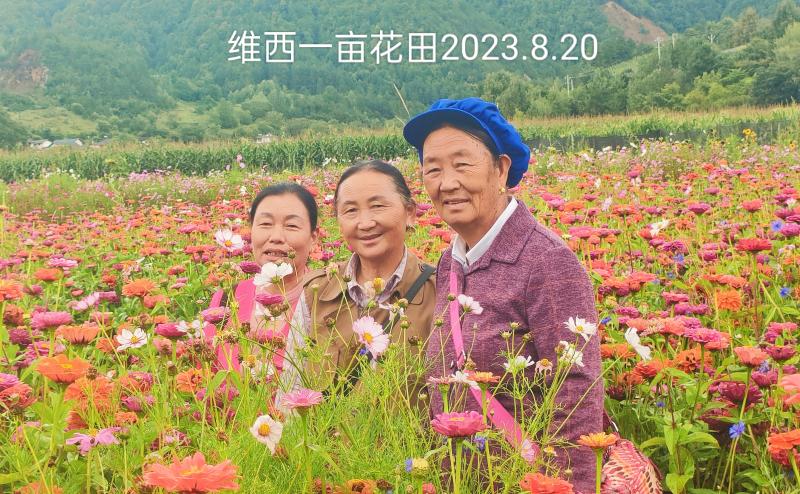 楊躍成把花卉基地起名為“一畝花田”,其實不止一畝。今年6月中旬開始,各種花卉爭奇斗艷、競相綻放。金燦燦的萬壽菊、金雞菊、格桑花等匯成了花的海洋,成為永春鄉(xiāng)拖枝村的一道靚麗風(fēng)景線,每天都有維西縣城市民及周邊游客前來看花賞景,特別是周末游客絡(luò)繹不絕。