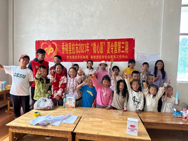 近日,由香格里拉市民政局、香格里拉市社會(huì)服務(wù)工作中心共同舉辦的尼西鄉(xiāng)2023年“微心愿”夏令營(yíng)第三期暨護(hù)童成長(zhǎng)活動(dòng)在《明天更美好》的合唱中順利結(jié)營(yíng),其間開展兒童游園、才藝表演、表彰獲獎(jiǎng)小朋友和優(yōu)秀志愿者。此次夏令營(yíng)為期15天,來(lái)自尼西鄉(xiāng)幸福村、江東村、新陽(yáng)村和湯滿村的153名小朋友和16名志愿者參加夏令營(yíng),開設(shè)作業(yè)輔導(dǎo)課程,舉行羽毛球、乒乓球、跳繩、丟沙包等運(yùn)動(dòng)項(xiàng)目,幫助孩子們提高學(xué)習(xí)成績(jī)、增強(qiáng)身體素質(zhì)、培養(yǎng)團(tuán)隊(duì)意識(shí),在運(yùn)動(dòng)中收獲健康和快樂(lè)。圖為小朋友們?cè)诨顒?dòng)中表達(dá)“微心愿”。