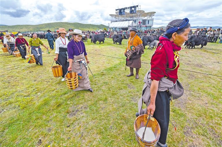 8月25日,四川省阿壩藏族羌族自治州紅原縣舉行第十一屆牦牛文化節(jié)牦牛產(chǎn)奶量比賽。紅原縣是優(yōu)良地方牦牛品種麥洼牦牛的核心產(chǎn)區(qū),擠牦牛奶是當?shù)夭刈迦罕娭匾纳a(chǎn)生活方式,當?shù)刂荚谕ㄟ^此項賽事讓更多人了解到牦牛文化的獨特魅力。