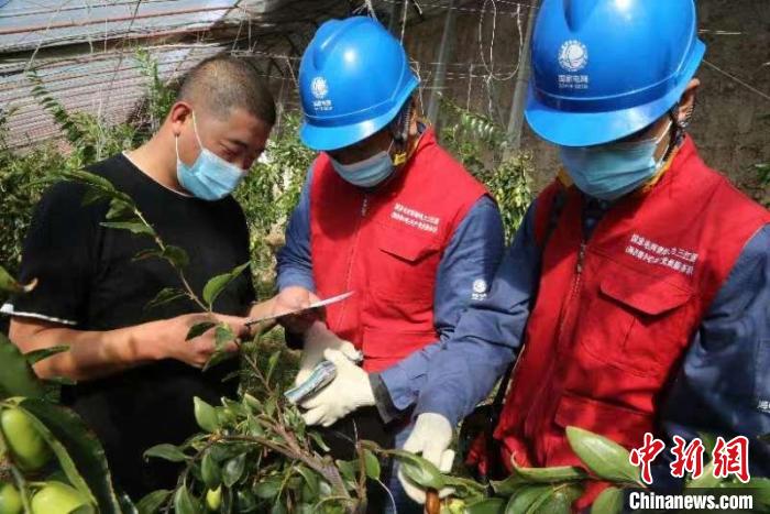 圖為國(guó)家電網(wǎng)青海電力三江源(海西德令哈)共產(chǎn)黨員服務(wù)隊(duì)在蔬菜大棚為客戶講解“互聯(lián)網(wǎng)+”供電服務(wù)。國(guó)網(wǎng)海西供電公司供圖