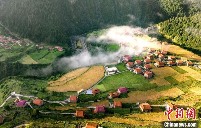 風(fēng)吹麥浪溢清香,田間地頭收割忙。眼下,四川阿壩州金川縣俄熱鄉(xiāng)成片的高原黑青稞迎來(lái)收獲季。村間沿路的田地里,黑青稞在微風(fēng)吹拂下如波濤翻滾,泛著金光。高處俯望,遠(yuǎn)處群山連綿,近處麥浪起伏,沃野千里,勾勒出一幅“產(chǎn)業(yè)興、百姓富、生態(tài)美”的鄉(xiāng)村振興美麗畫卷。