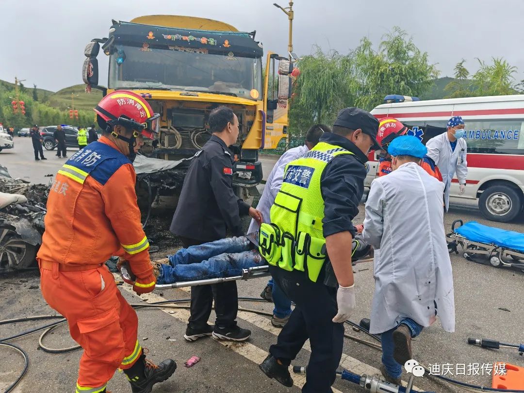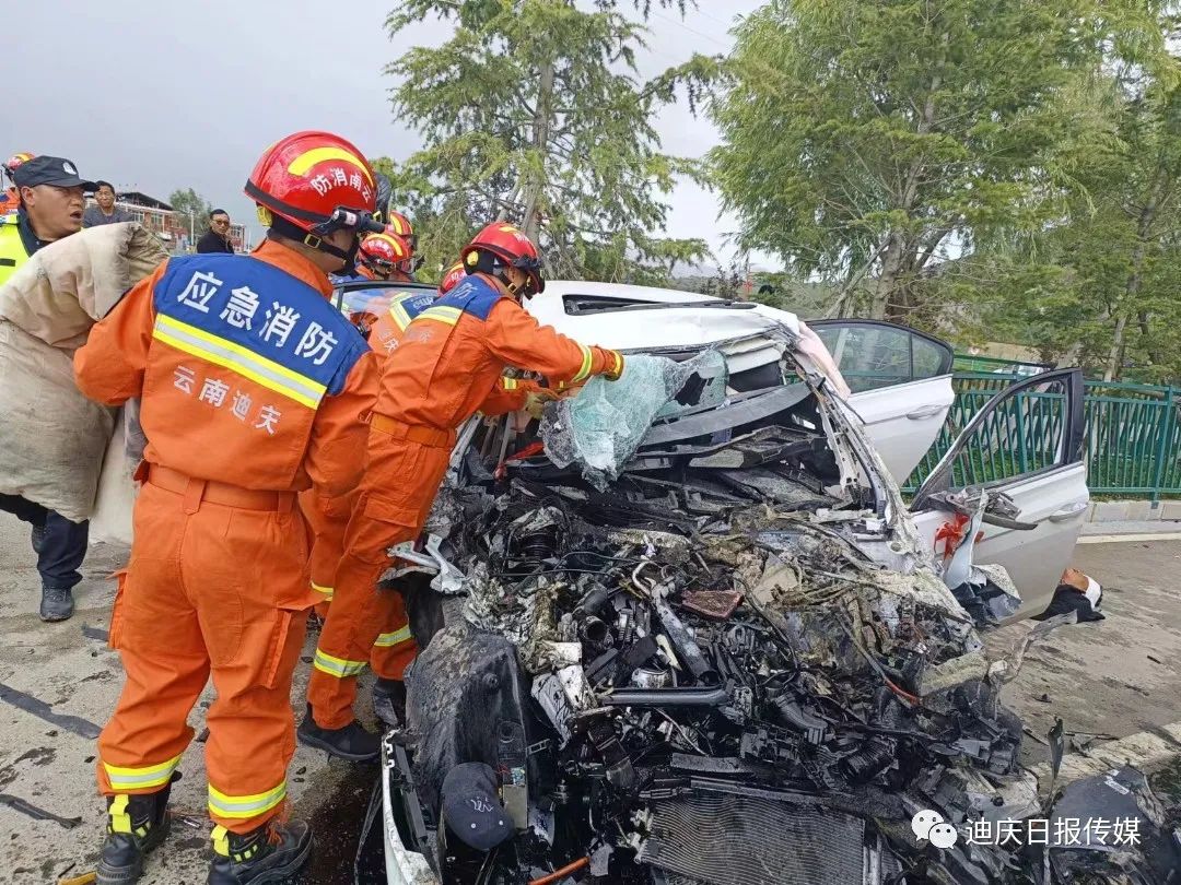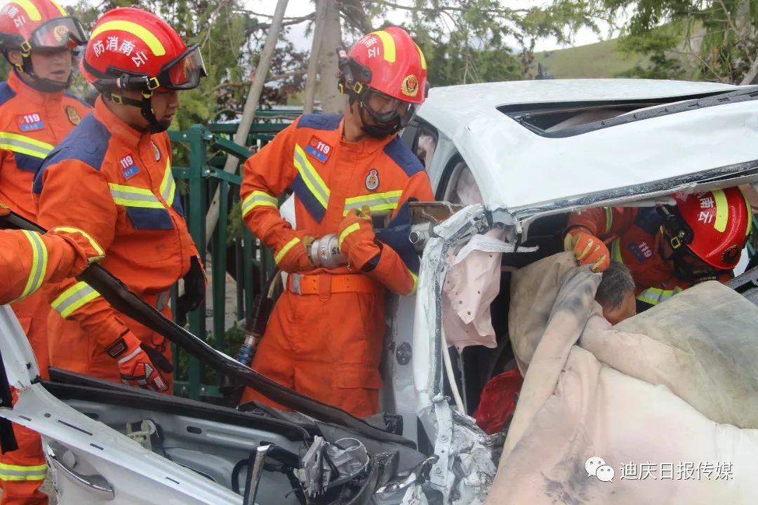 接到調(diào)令后,香格里拉消防救援站立即出動(dòng)2車(chē)13人前往處置,到達(dá)現(xiàn)場(chǎng)后,發(fā)現(xiàn)一輛小轎車(chē)與一輛貨車(chē)相撞,轎車(chē)嚴(yán)重受損變形,車(chē)內(nèi)安全氣囊已彈出,副駕駛位被困人員頭部、腿部多處受傷無(wú)法動(dòng)彈,意識(shí)模糊,有嚴(yán)重生命危險(xiǎn)。