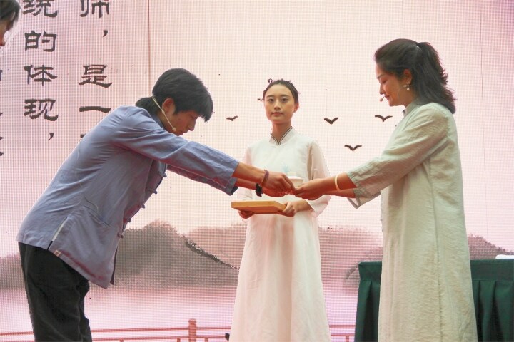 隨后,教師和同學(xué)們集體宣讀誓言,慷慨洪亮的聲音在宣告他們有信心做好一名稱職的人民教師、優(yōu)秀的學(xué)生。學(xué)生代表的發(fā)言充滿朝氣與活力,胸懷理想與信念,展現(xiàn)出同學(xué)們磨礪自我、奮斗青春的信心與抱負(fù)。教師代表的發(fā)言如良師益友娓娓道來,用榜樣的力量和長者的親切,為同學(xué)們指點(diǎn)迷津、加油鼓勁,激勵(lì)同學(xué)們胸懷遠(yuǎn)志、堅(jiān)毅卓絕、奮發(fā)進(jìn)取、只爭(zhēng)朝夕!隨后,同學(xué)們?cè)谥鞒秩说闹敢旅C整衣冠、向老師鞠躬行禮,寓意此后正式踏入學(xué)門,明志于四方。