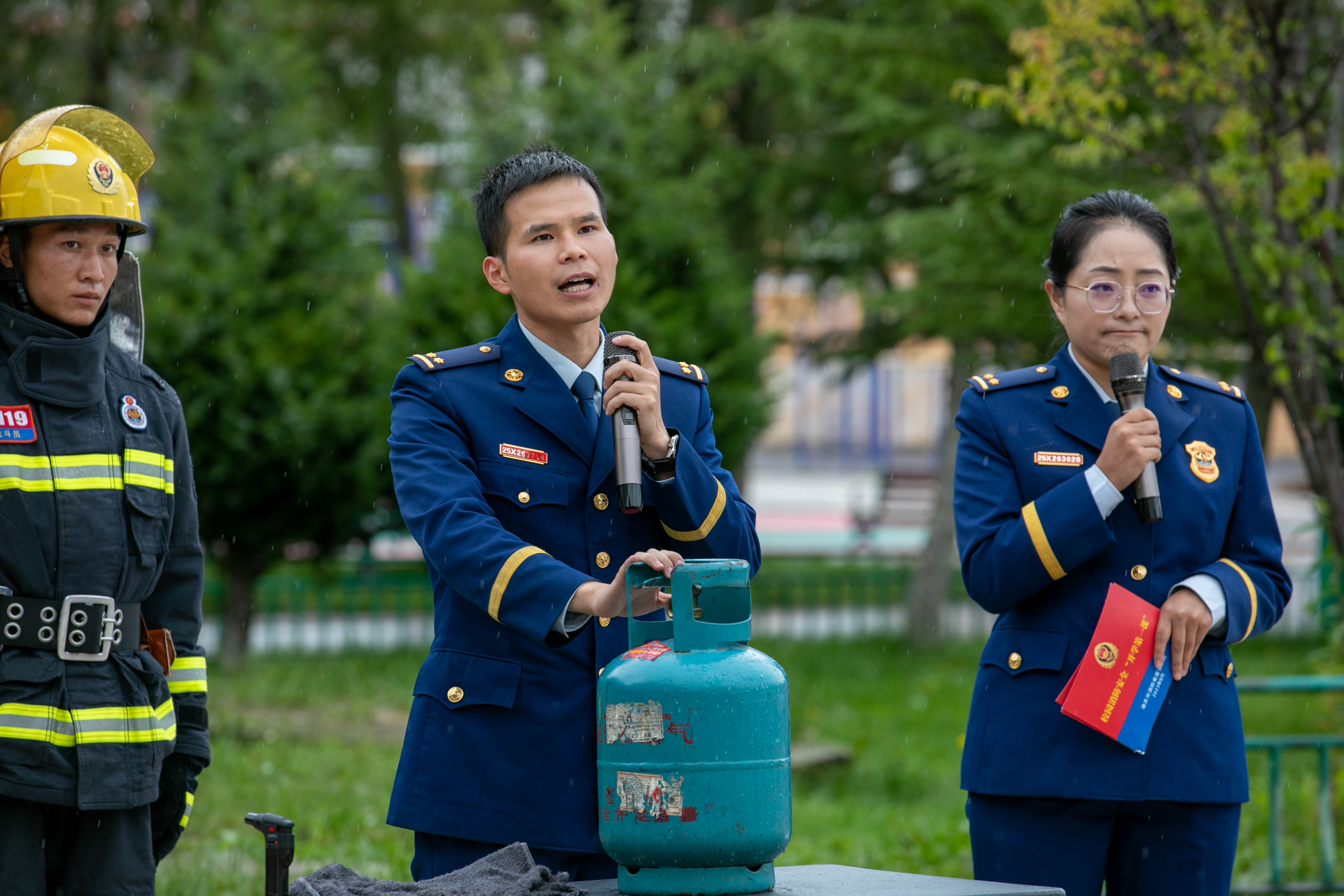 其間,支隊(duì)宣傳員還帶領(lǐng)學(xué)生們 “零距離”參觀體驗(yàn)消防車輛和器材裝備,對(duì)搶險(xiǎn)救援車、液壓破拆系統(tǒng)、手抬機(jī)動(dòng)泵等消防器材裝備進(jìn)行現(xiàn)場(chǎng)講解,讓師生了解器材裝備的用途和使用方法。活動(dòng)中還開(kāi)展了真火撲救實(shí)操演練及應(yīng)急疏散逃生實(shí)戰(zhàn)演練。