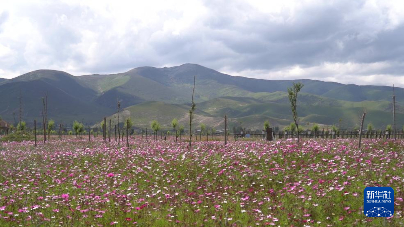 難以置信的是,這里曾是一片沙化嚴重的草場,當(dāng)?shù)卮迕窨總鹘y(tǒng)放牧已難以為繼。2016年以來,當(dāng)?shù)卣脤嵤┥鷳B(tài)治理工程的契機,整合涉農(nóng)涉旅資金,大面積種植格?;?,打造出近1600畝的色拉花海。