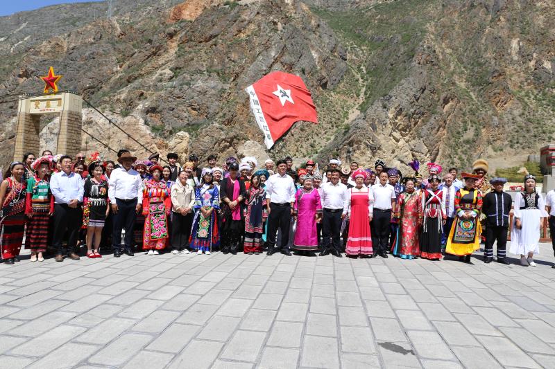 活動(dòng)中,全體人員合唱《我和我的祖國(guó)》,在德欽縣第二小學(xué)的少先隊(duì)解說(shuō)員的指引解說(shuō)下,56位民族嘉賓還參觀了賀龍橋紅軍長(zhǎng)征紀(jì)念館,在紅軍長(zhǎng)征路過(guò)賀龍橋的故事中,大家走進(jìn)了曾經(jīng)硝煙彌漫的艱苦歲月,更深刻地感受了戰(zhàn)爭(zhēng)年代紅軍與各民族肝膽相照、相依相存的深情厚誼。
