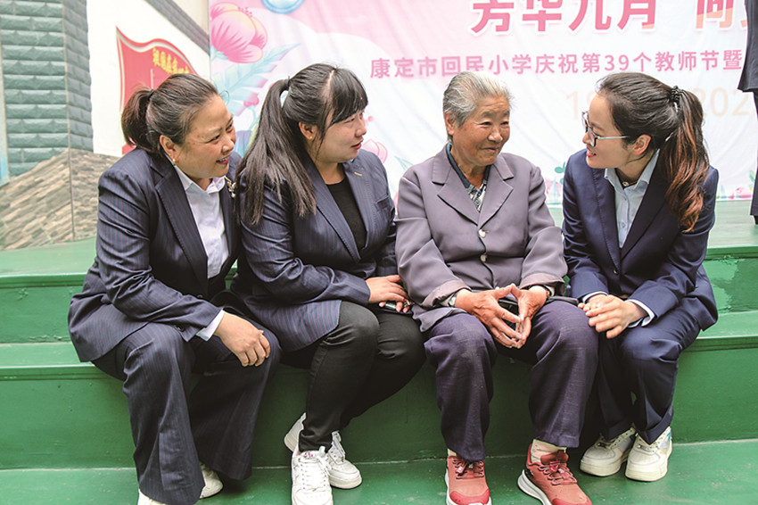 “她是我的語文啟蒙老師,為我叩開世界的大門!”“劉老師,長大后我就成了您!”9月8日,在康定市回民小學開展“芳華九月 向光而行”慶祝第39個教師節(jié)暨建校90周年慶主題活動上,數學老師王慧懿遇到了她曾經的老師劉孟彬。再次見到曾經的老師,王慧懿特別激動,她攙扶著退休老師劉孟彬,帶她逛校園,尋找學校的宣傳欄里劉老師的名字。