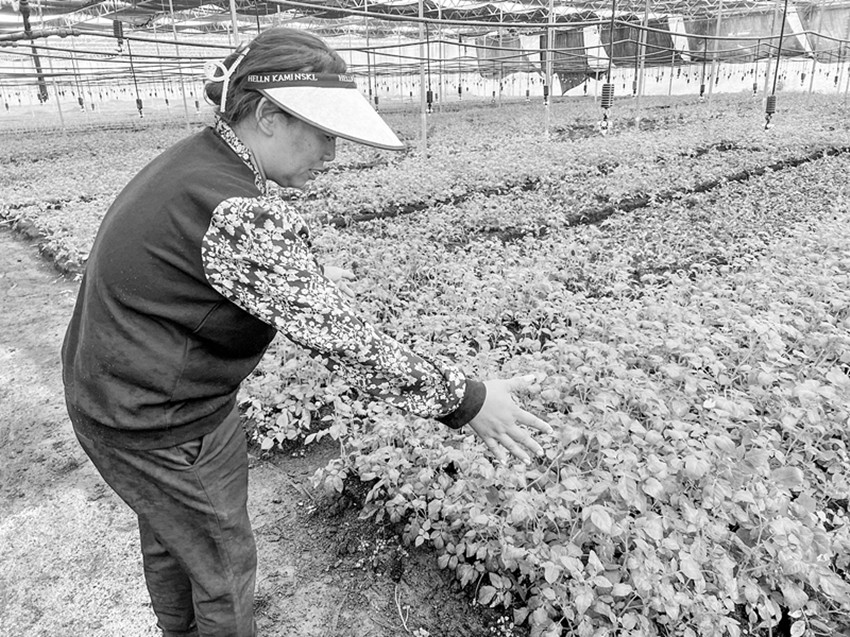 村民在基地管護(hù)馬鈴薯幼苗。