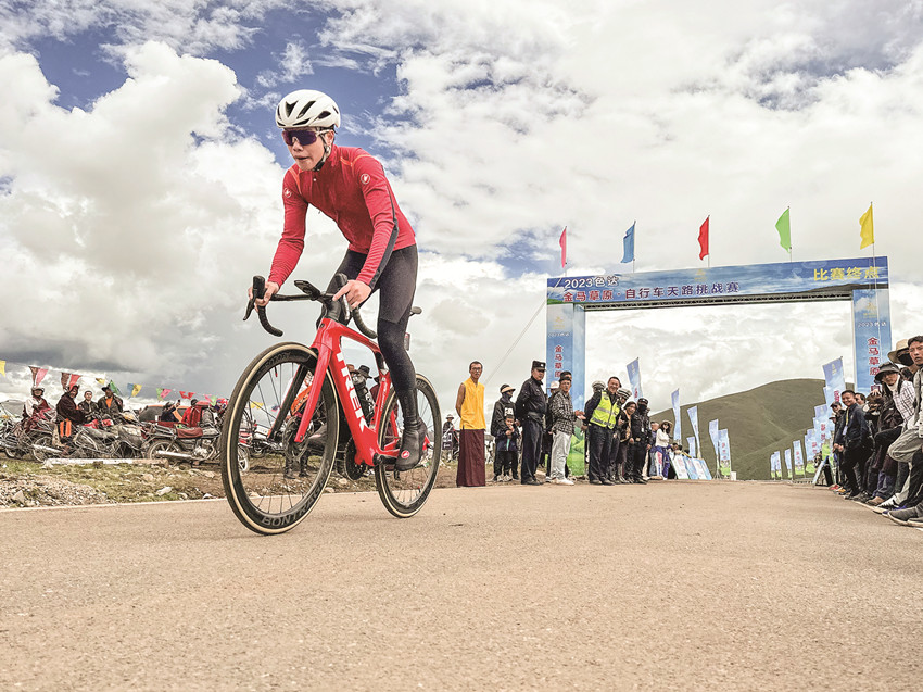 2023年8月11日,作為“福地色達(dá)·金馬之邀”草原游牧文化遺產(chǎn)體驗季系列活動之一的金馬草原自行車天路挑戰(zhàn)賽在格薩爾文化藝術(shù)中心鳴槍開賽。100多名來自全國各地的自行車專業(yè)運動員及自行車愛好者齊聚福地色達(dá),共赴一場別開生面的體育盛宴?!∫晃粎①愡x手激動地說:“我是從湖北武漢過來的,第一次參加海拔這么高的比賽,感覺很好、很棒。一路風(fēng)景超美,美呆了!如果還有這樣的比賽,我一定會再來的!”