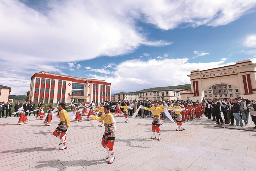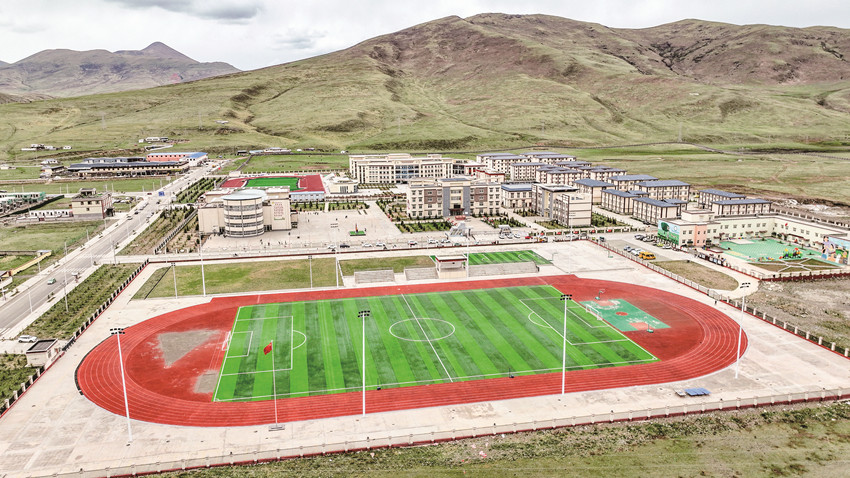 9月12日,走進(jìn)色達(dá)縣椒江希望學(xué)校,寬闊的操場、彩色的跑道、規(guī)范的球場,生龍活虎的學(xué)生們正進(jìn)行體育活動。