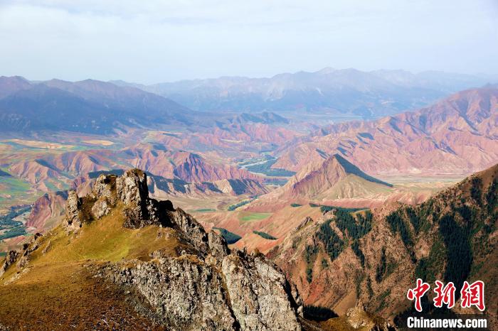9月14日,在青海省海北藏族自治州祁連縣,記者航拍天境山。天境山位于八寶鎮(zhèn)拉洞村,距祁連縣城約6公里,這里人跡罕至、怪石嶙峋、山泉潺潺、古柏參天,站在觀景臺(tái)舉目四望,遠(yuǎn)山青翠如黛、羊群似珍珠灑落。