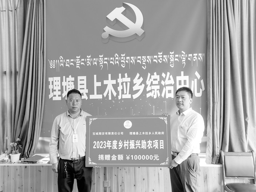 圖為公司向鄉(xiāng)上捐贈(zèng)助農(nóng)資金。