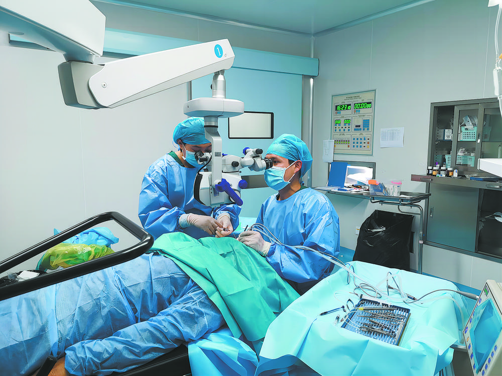 魯青眼科醫(yī)院援青醫(yī)生在進(jìn)行白內(nèi)障手術(shù)。