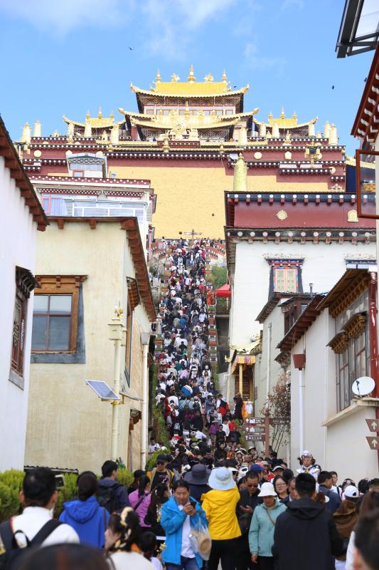 “看到松贊林寺全景感覺很雄偉、莊重,我們還穿了當(dāng)?shù)氐牟胤牧艘恍懻?,感覺很漂亮,也比較出片?!眮碜陨綎|的羅云女士說,“我們進(jìn)景區(qū)的時(shí)候已經(jīng)中午12點(diǎn)多了,工作人員都一直沒有休息,還耐心地引導(dǎo)和服務(wù)我們,感覺很溫馨”。據(jù)了解,假期前三日,松贊林景區(qū)游客接待量不斷上升,分別為4300人次、8200人次、14400人次。